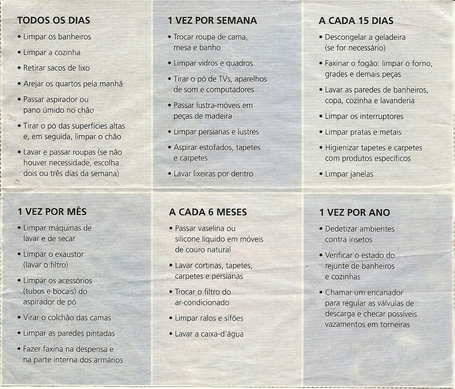Encontrei essa tabela no site/blog da personal organizer Cristina Papazian. Aliás, como tem desses profissionais hoje em dia. Que bom!
